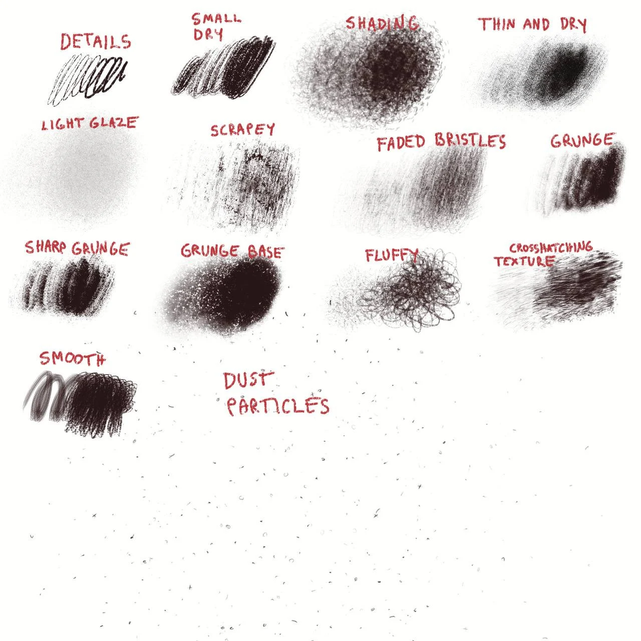 14 unique brushes for diverse textures and effects. Designed to infuse your digital art with raw, messy, and textured charm. Imperfection meets artistic brilliance!