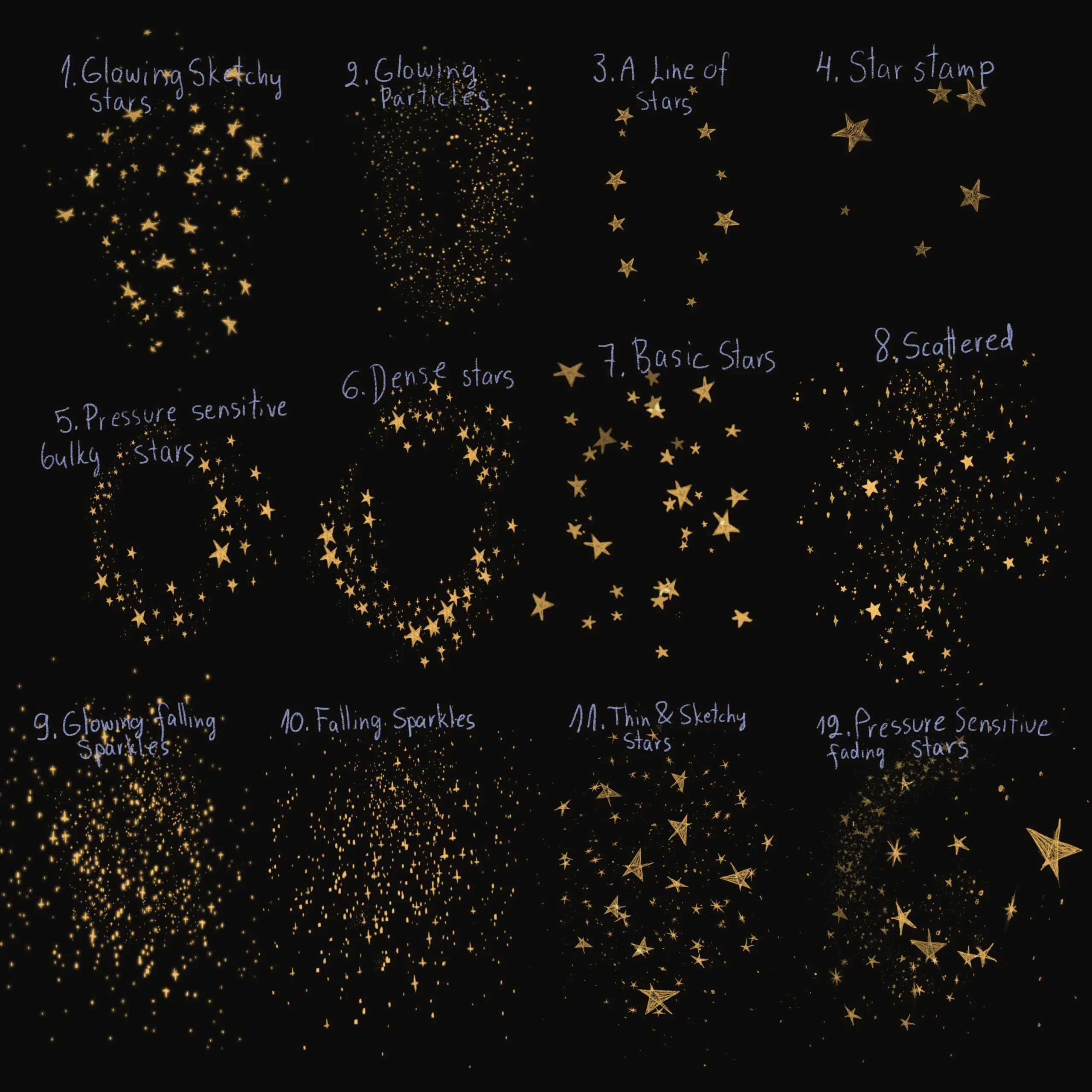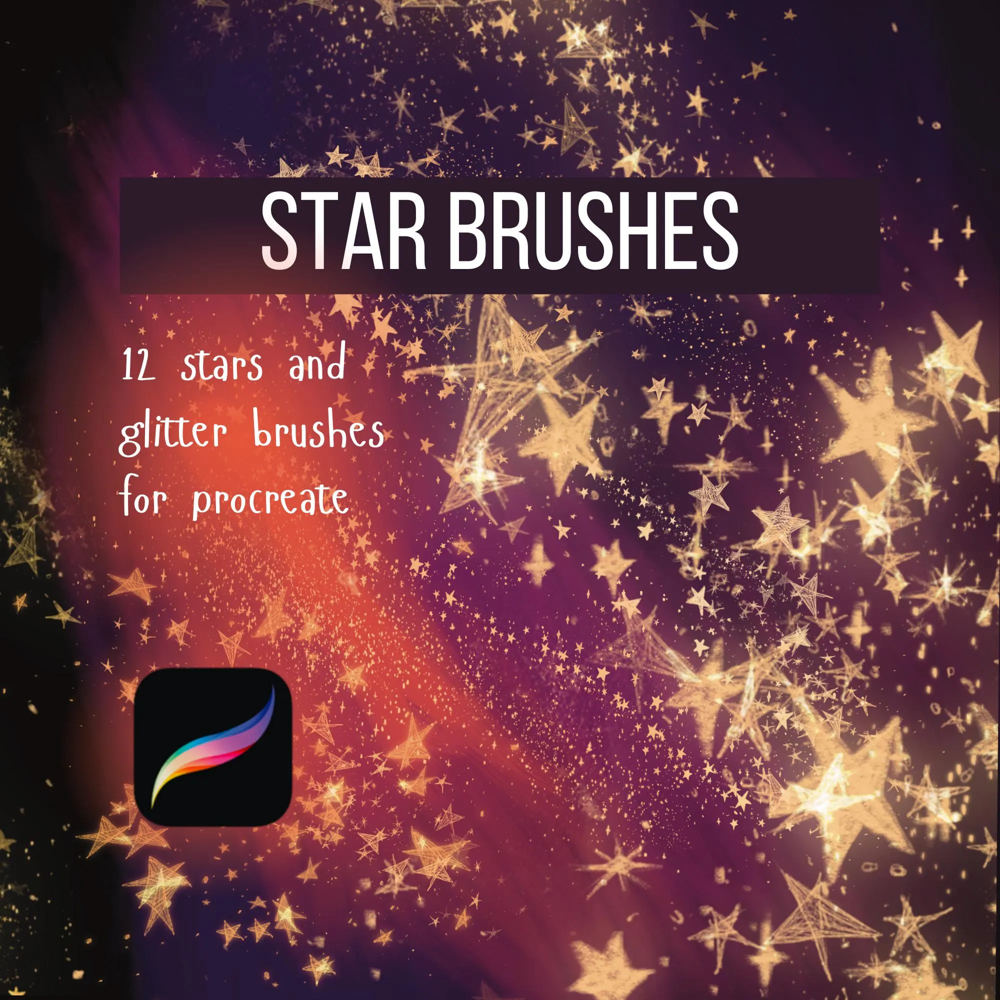 12 Stars and Glitter Procreate Brushes – the perfect toolkit for adding a touch of magic to your digital illustrations! Whether you’re a seasoned artist or just starting out, these brushes will help you create dazzling starry skies, shimmering effects, and enchanting illustrations with ease. Get ready to paint the cosmos and sprinkle some glittery charm into your creations. Add it to your Procreate arsenal today and let your imagination sparkle!